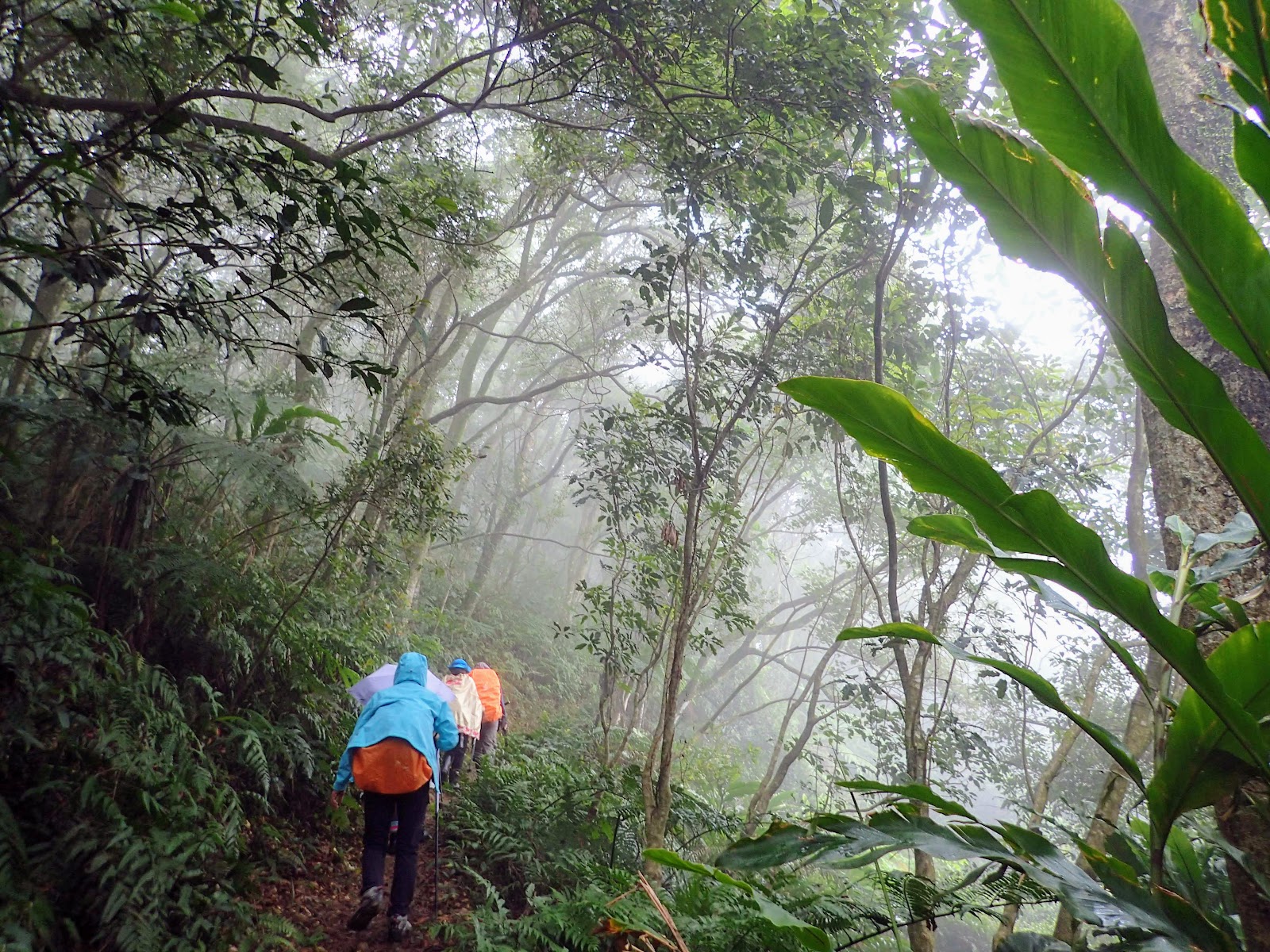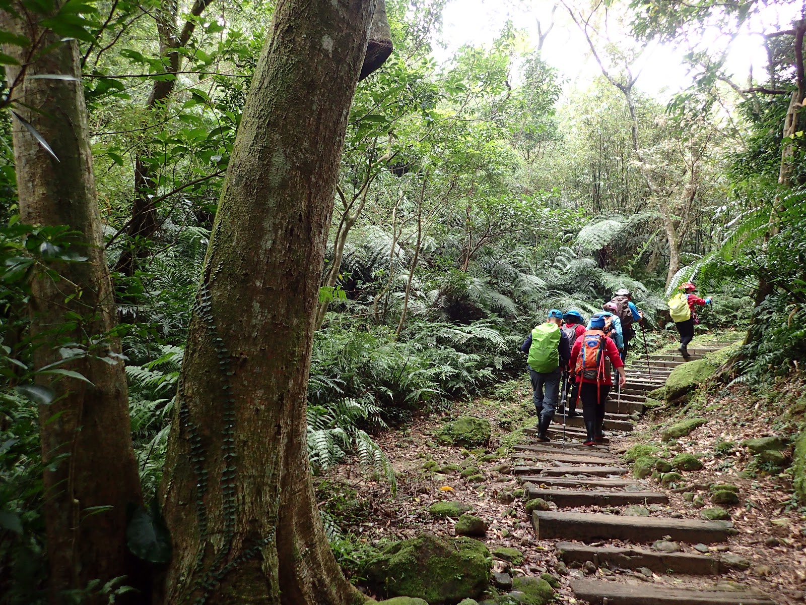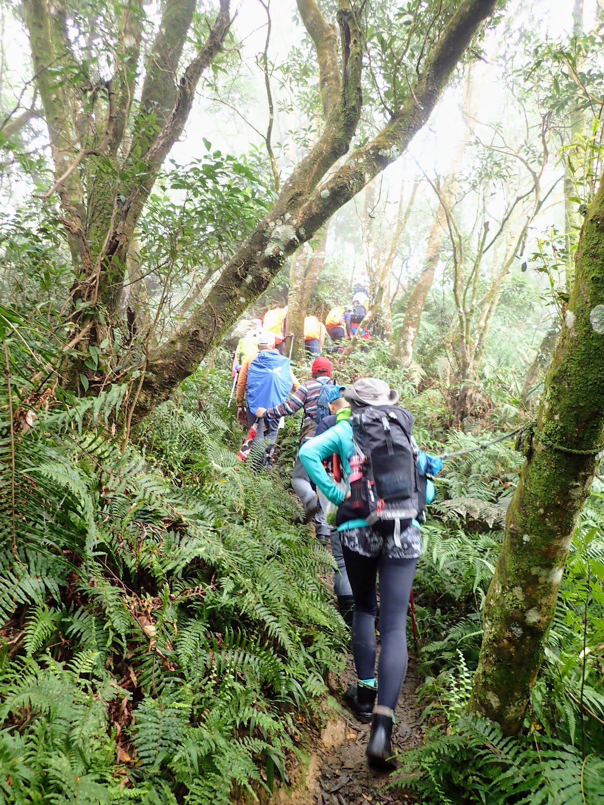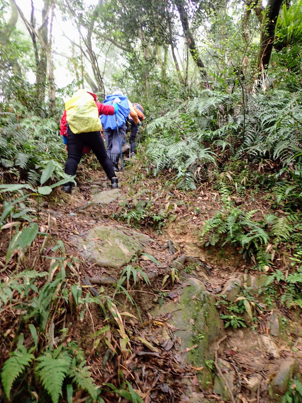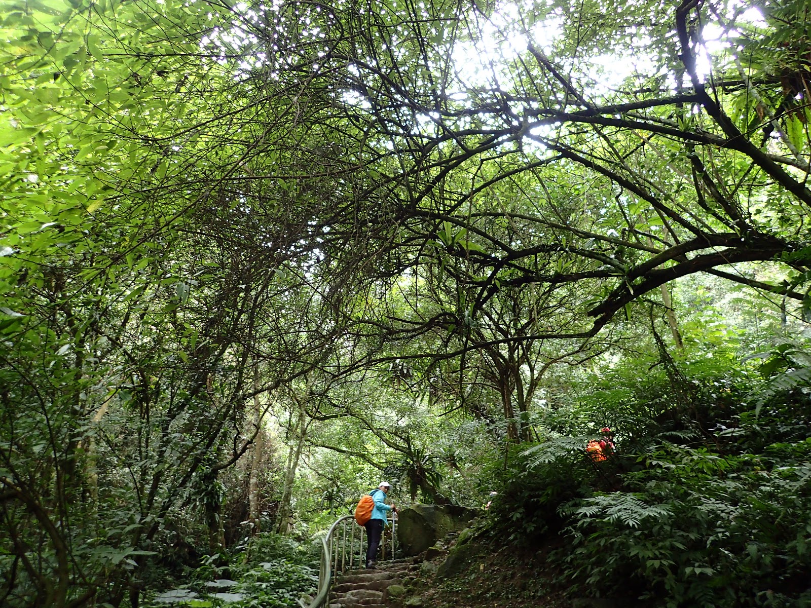 順著階梯往上, 沿途景色蒼翠迷人, 雨中的空氣特別的清新
