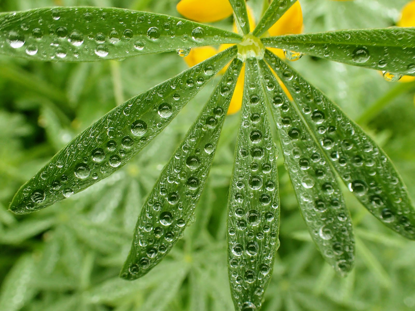 雨中的魯冰花葉好像淚珠兒般晶瑩剔透, 閃亮耀眼動人