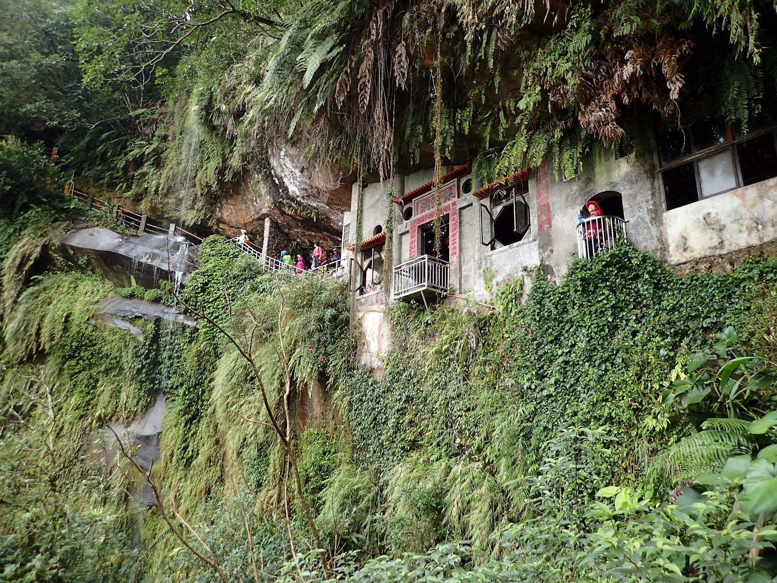 很快的, 9:30來到銀河洞, 往上瞧, 峭壁旁涓絲瀑布凌空而下, 真不愧是網路上著名的仙氣景點, 按捺不住的同行早已爬上觀景