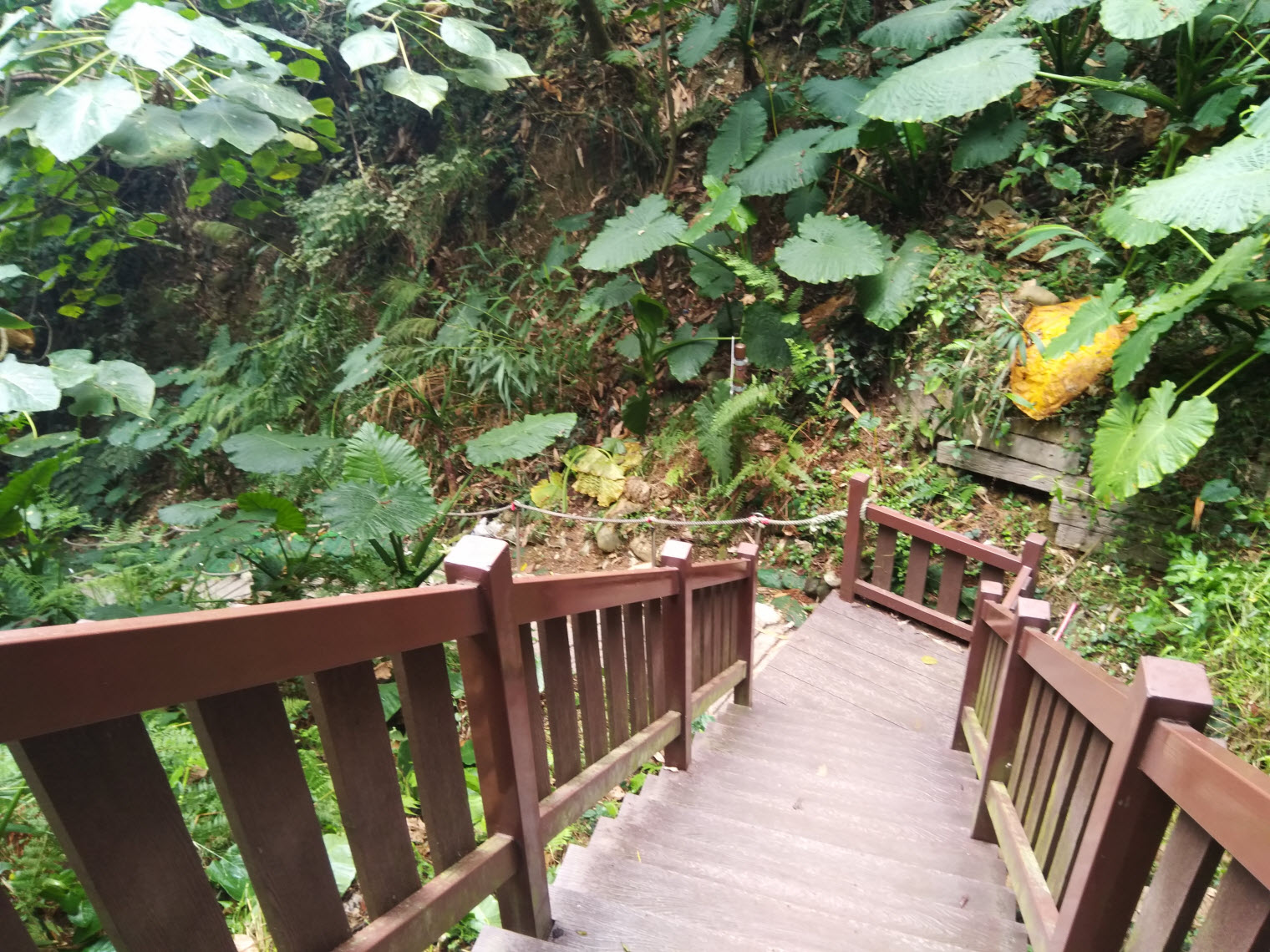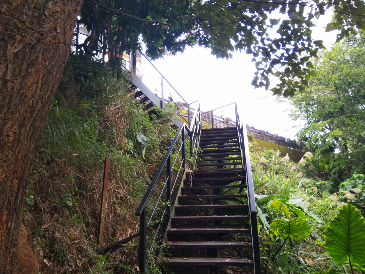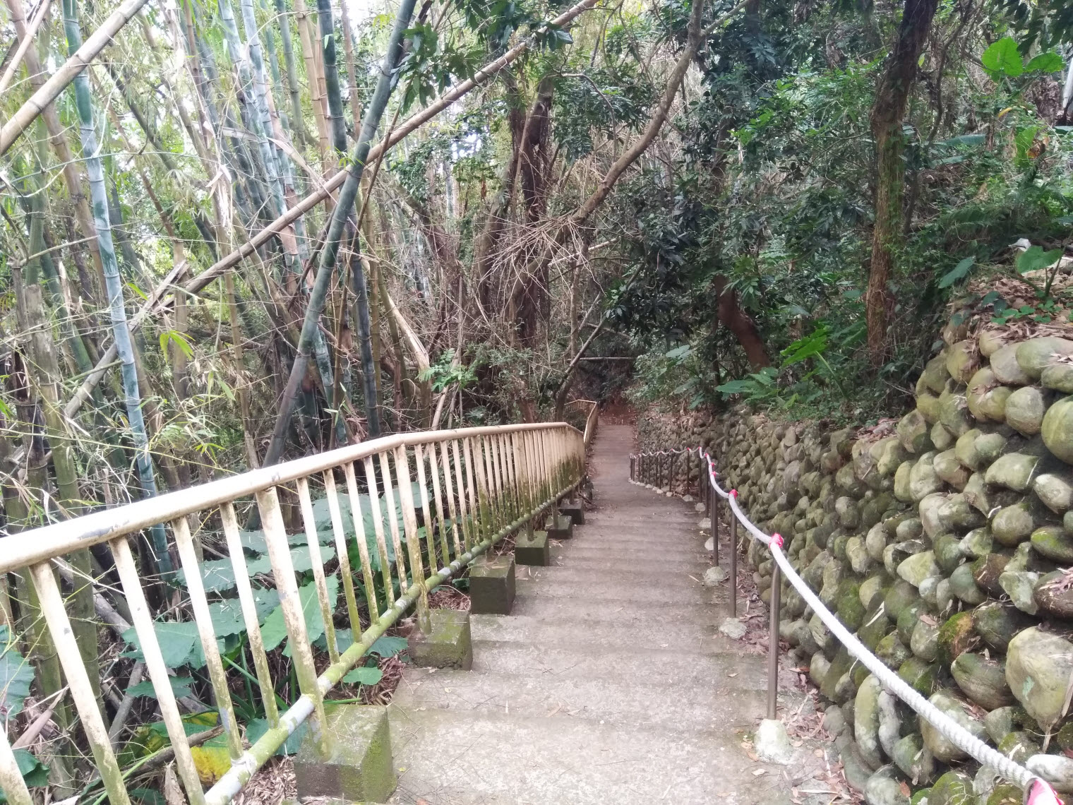受天宮前的階梯也許在經年累月的雨勢沖刷下導致土坡鬆動損壞,而這條下山階梯雖古樸,可是看起來就非常牢固!