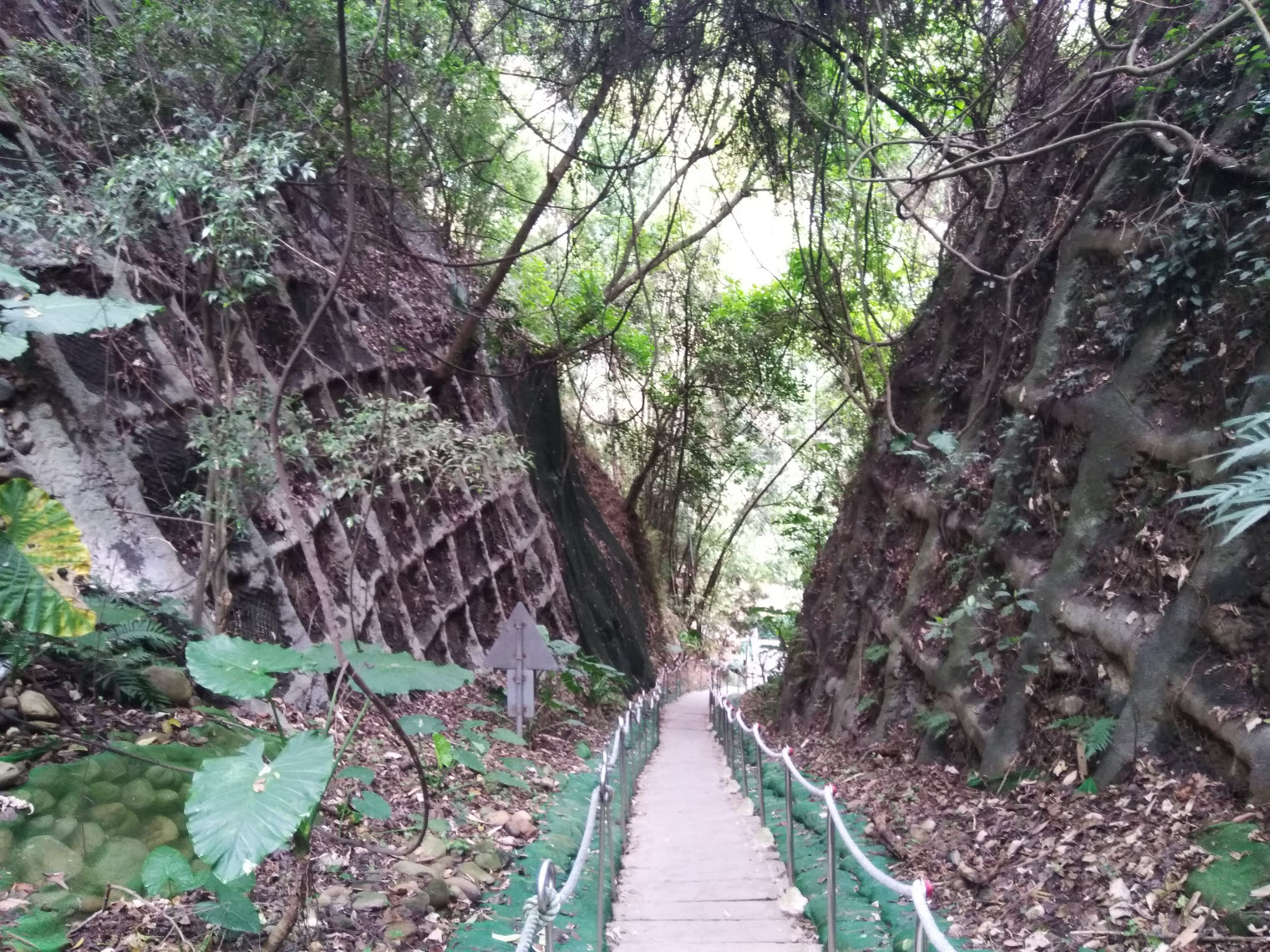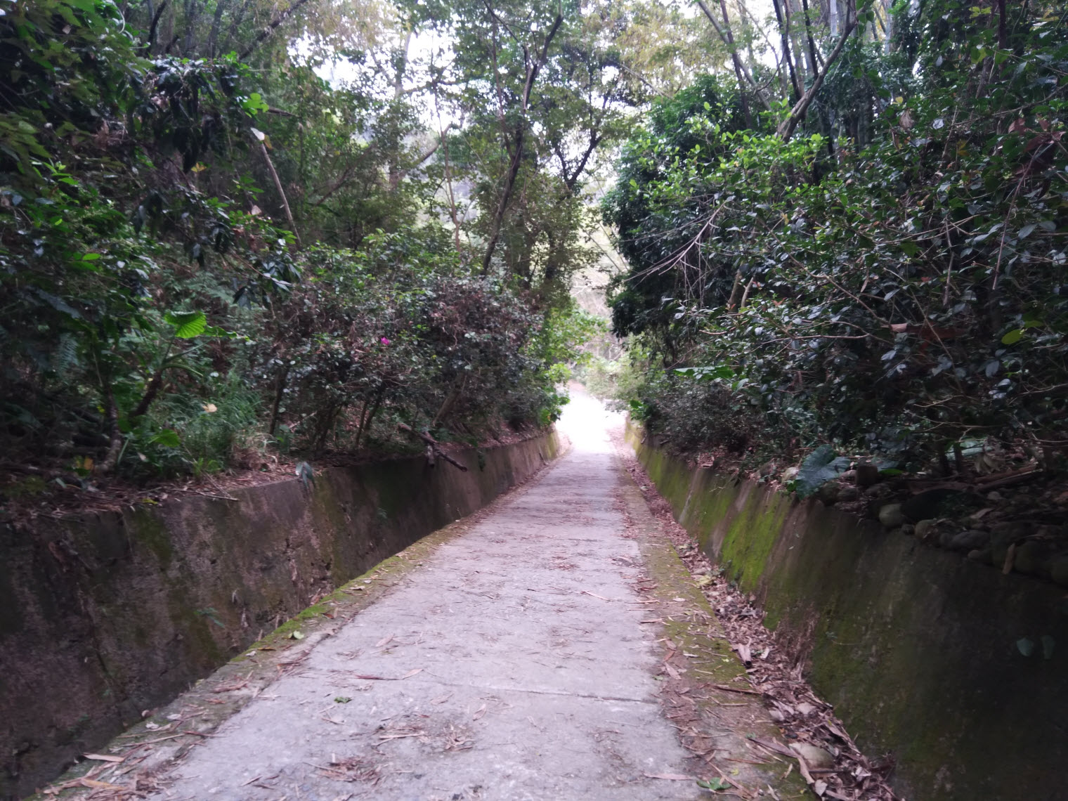 兩側的植株形成良好的遮蔽路段,同時地上也有少許的青苔