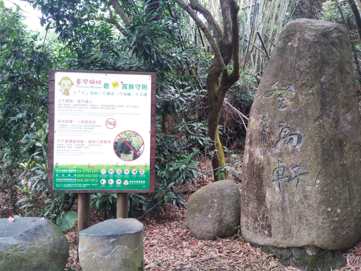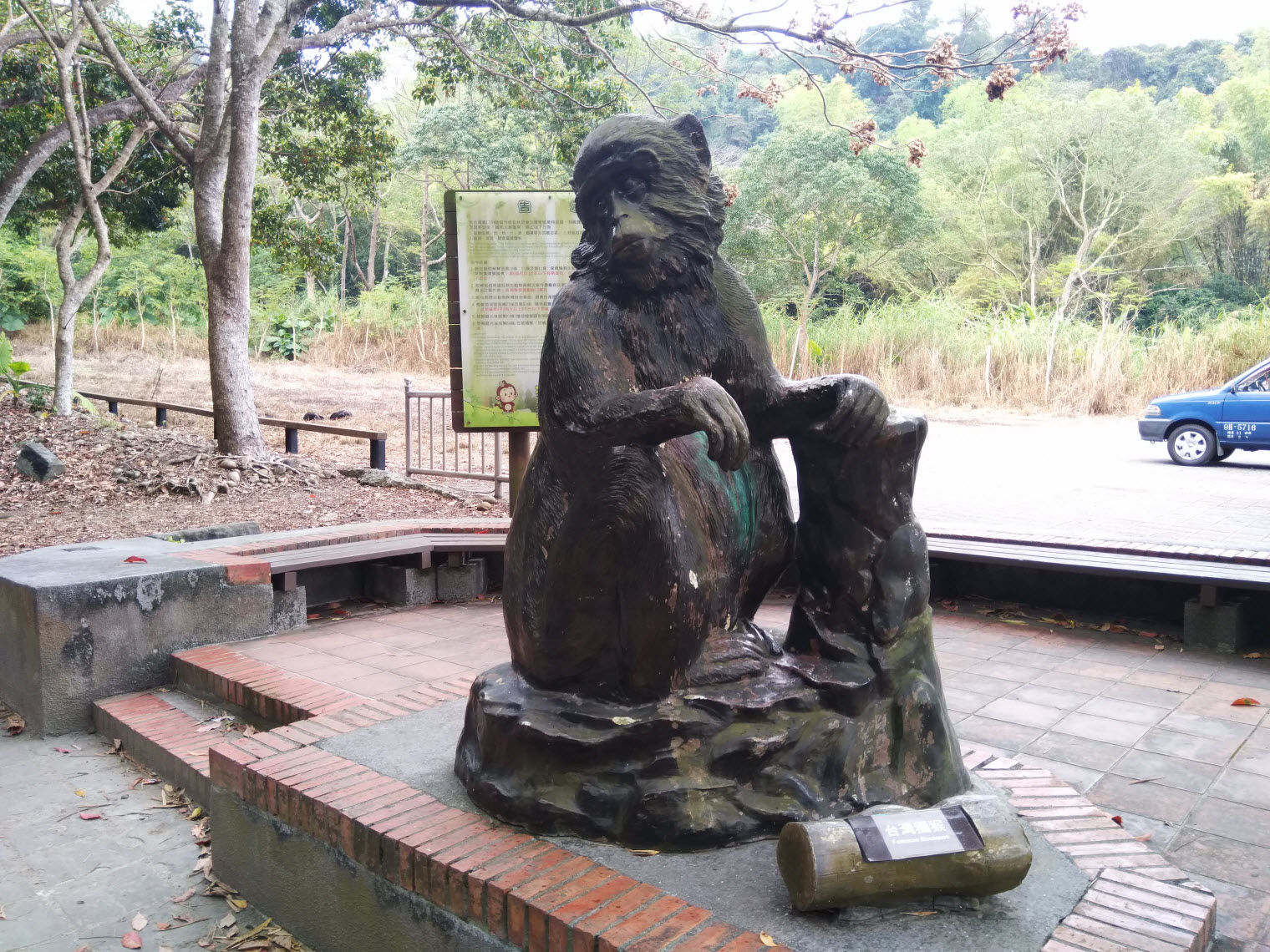 獼猴意象的石雕,聽說有人是衝著獼猴才來走步道的,不過真的要碰運氣囉