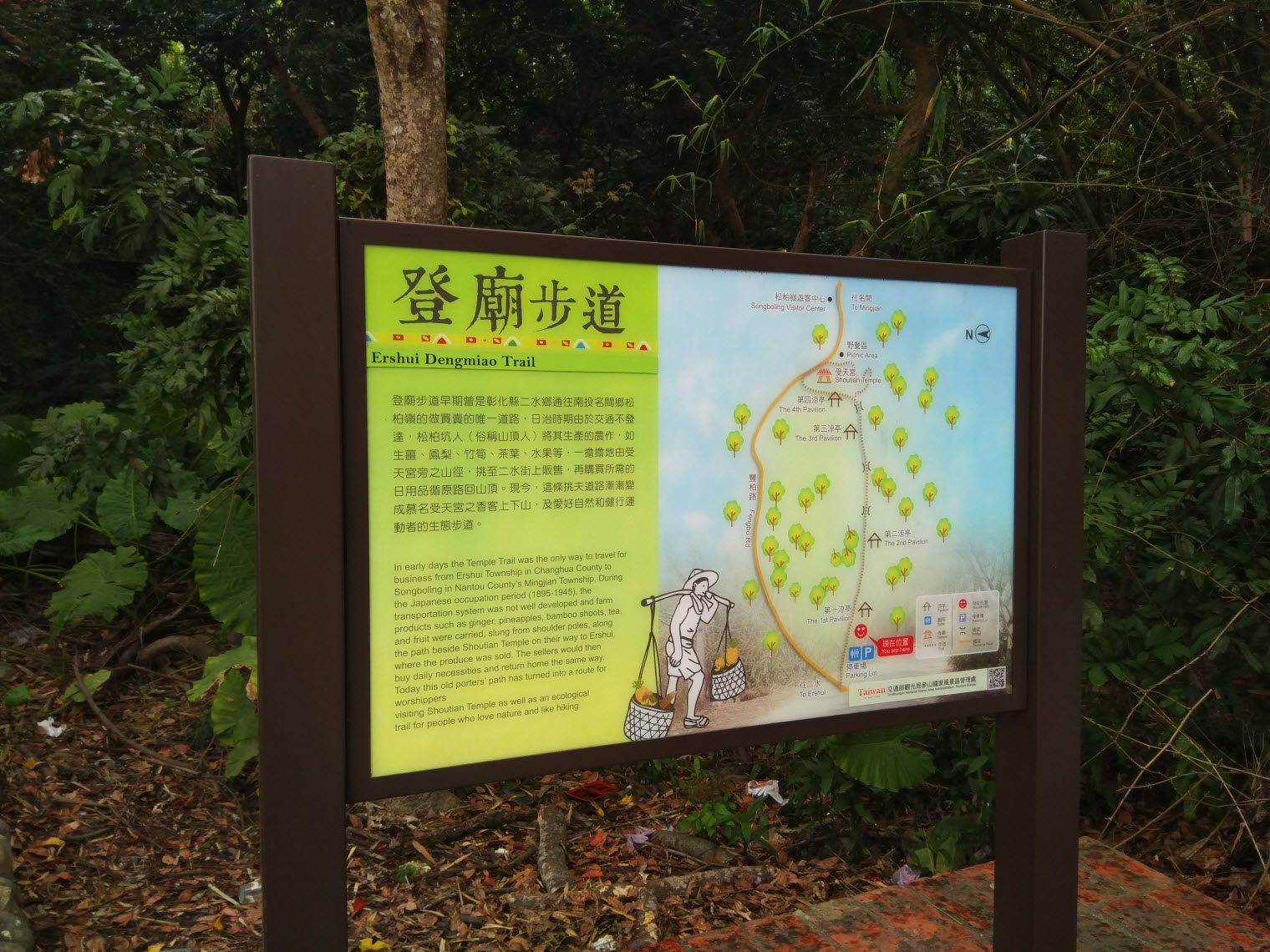原來登廟步道不僅僅是早期民眾到受天宮的進香路,還是受天宮旁松柏坑居民挑農作物下到二水街區販售的路線