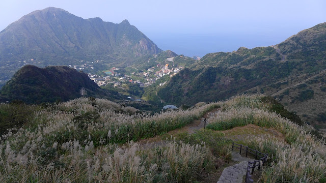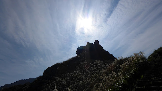 茶壺山經半屏山到草山戰備道這一段為黃金三稜,除交通方便外,步道完整,遊客較多,路徑上的芒草不會像其他路線很快的就被淹沒,其難度要說為所有黃金稜線中最簡單的一條並不為過,景色不打折扣,全程皆有展望,最適合大眾化的路線,這一條,此次前來除了正規路線外,順道加攀上獨立岩體看看不同角度的風景。