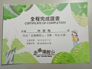 【臺北大縱走 2】【第二回合全程完成證書】鞍部→大屯山步道→大屯山主峰→大屯坪步道→二子坪步道