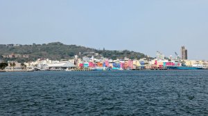 坐渡輪登旗後山。欣賞夜色燈光下的燈塔、砲台、港區