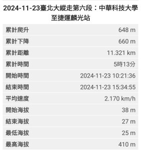 2025臺北大縱走第六段:中華科技大學至捷運麟光站