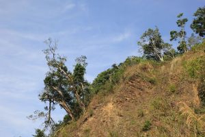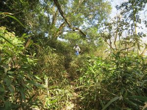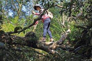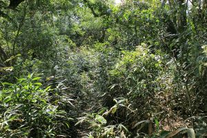 遇到幾隻台灣獼猴在樹上跳躍,地上有不少大便。